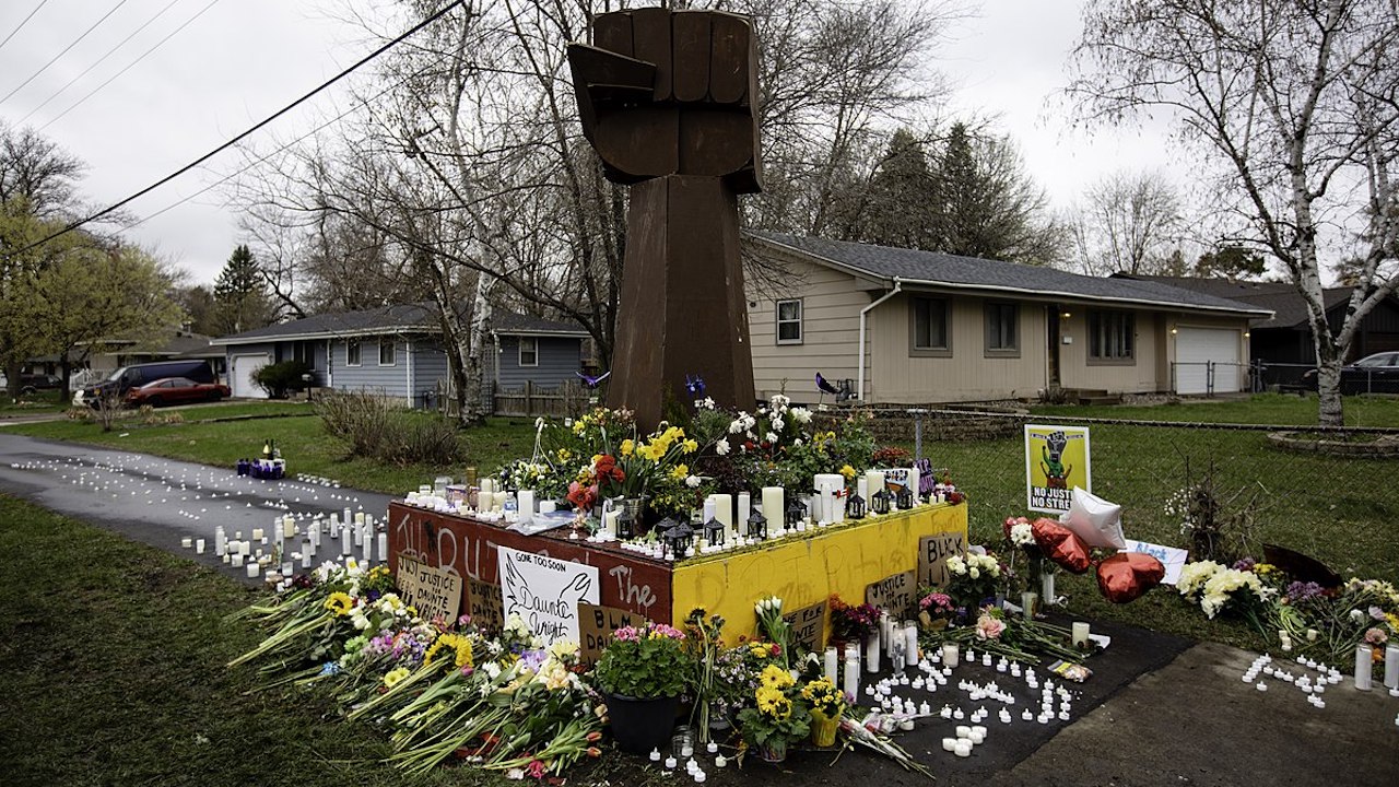 A memorial site near the place where Daunte Wright was shot and killed on April 14, 2021 in Brooklyn Center, Minnesota
