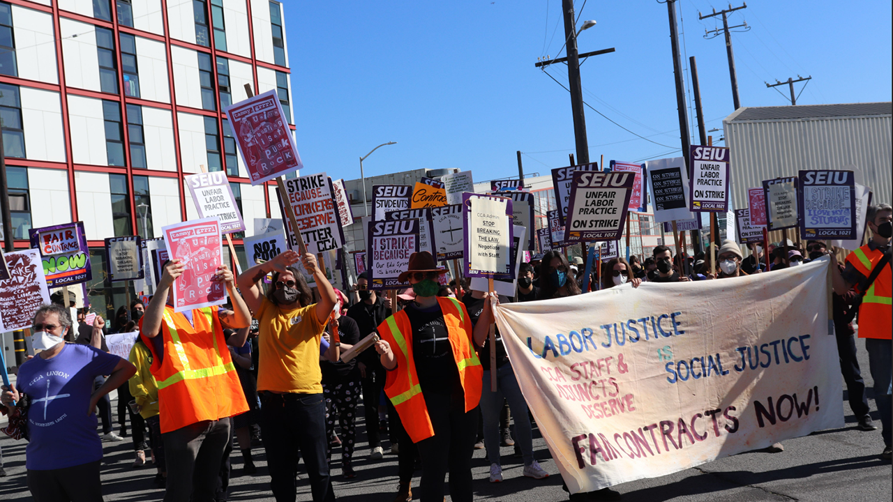 Most workers have not received wage increases since January 2020, and no pension contributions for a full year. So far, CCA has offered all union staff a 2% wage increase. But with most staff making less than $40,000 a year and two-thirds of them being low-income, strikers correctly argue that this is not enough to keep up with the cost of living and commuting in the Bay Area. In addition, they point out the excessive salaries of the college’s top administrators – in 2019, four of the school’s administrators made well over $270,000, while the president took in over $580,000!