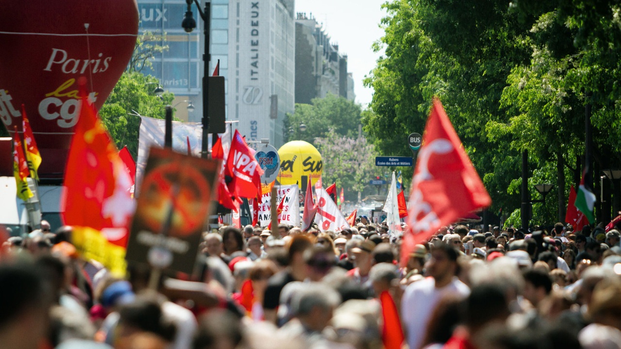 Demonstration in Paris on May 1st (International Workers Day), 2025. Image credit: Martin Noda / Hans Lucas (cropped)
