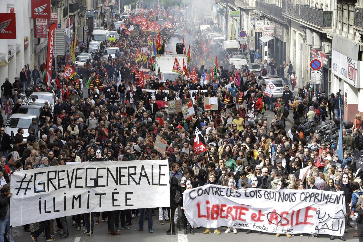 Tens of thousands of workers demonstrated across France on May Day protesting the policies of the government and their rightwing president, former investment banker Emanuel Macron. Since Macron’s election a year ago, his government has attacked the rights of workers, retirees, immigrants, and students, trying to cut jobs, reduce social services and end protections that workers won years ago. Meanwhile Macron has given big tax cuts and gifts to the 1%.