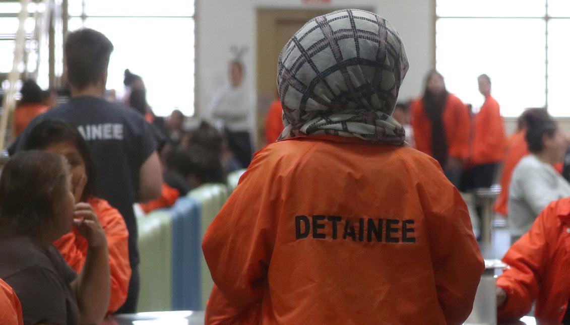 Today 90% of asylum seekers are being held in detention centers, usually in terrible conditions. For example, at the Adalante center on the border of California and Mexico, three people died in custody last year. People imprisoned there are paid $1 a day for cleaning and kitchen work. The food is terrible. There are often maggots in the meat. The center is in an isolated area, making it almost impossible to connect with support groups or find lawyers to help with asylum cases. This center is run by GEO Group, part of the prison industrial complex that profits running prisons and detention centers.