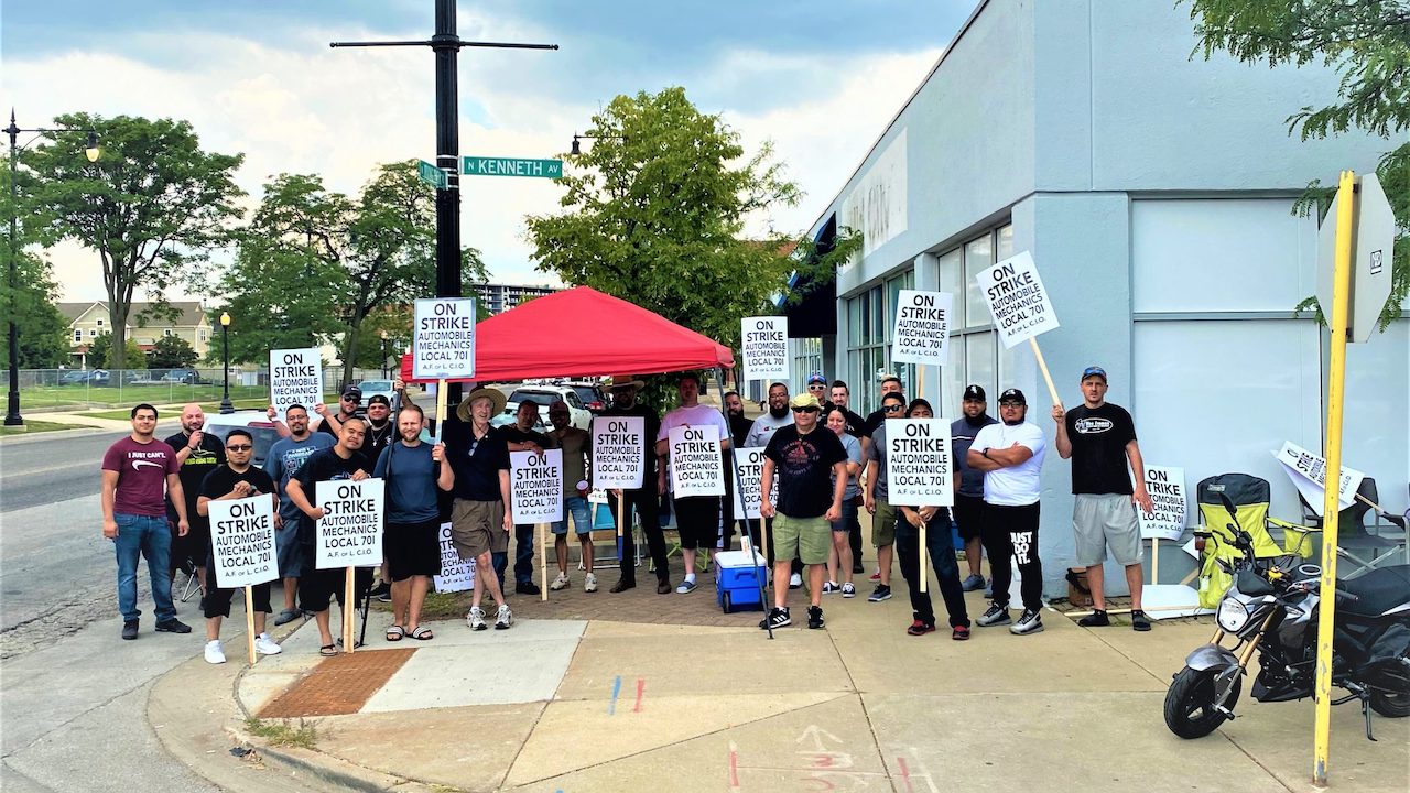 About 800 auto mechanics at 56 new car dealerships in the Chicago area have been on strike since August 2. The mechanics or techs are part of International Association of Machinists (IAM) Local 701, a large amalgamated local. The bosses are represented by the New Car Dealer Committee (NCDC), which is the collective bargaining vehicle of the Chicago Automobile Trade Association. Labor struggle is not new for the IAM and the NCDC and there was a seven-week strike in 2017.