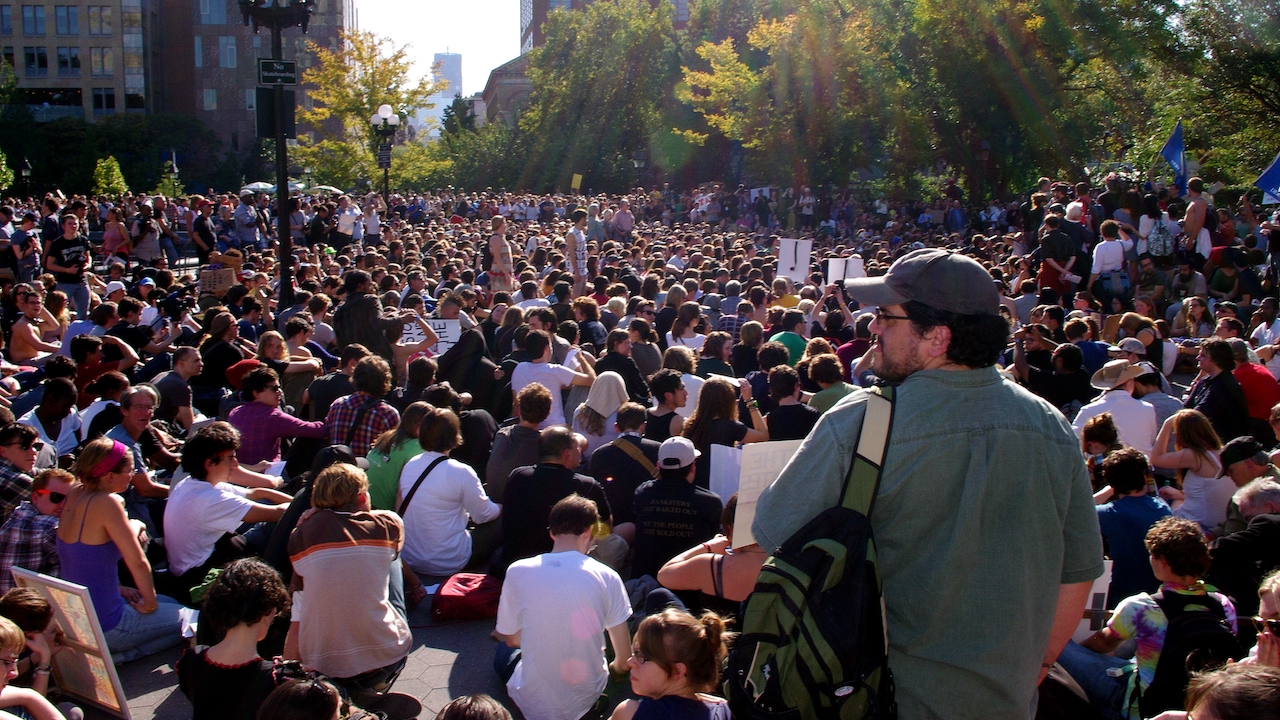 On September 17, 2011, two thousand protesters in New York occupied Zuccotti Park in Manhattan, in the heart of New York City’s financial district. The protesters were united by their outrage at the massive inequality between the 99% and the 1%. Their anger found an echo across the country. Soon after they occupied Zuccotti Park, hundreds of similar protests spread across the country, gathering in parks, city centers, and town squares, and setting up encampments, some with hundreds of tents.