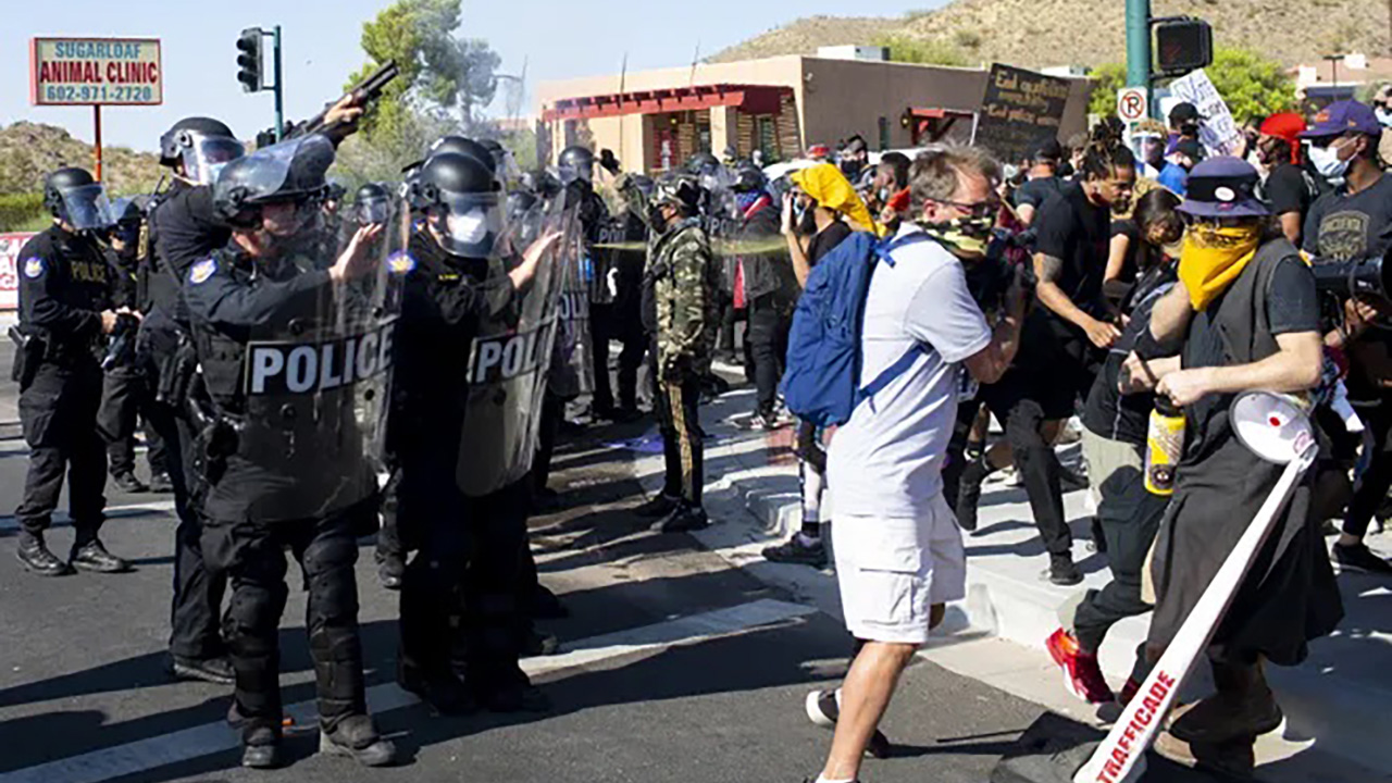As if the story couldn’t get any crazier, as Trump was repeating his mantras about how the virus is “going away,” the protest outside the event, which was considered an “unlawful assembly” by the Phoenix PD, was dispersed using flashbang grenades and teargas.