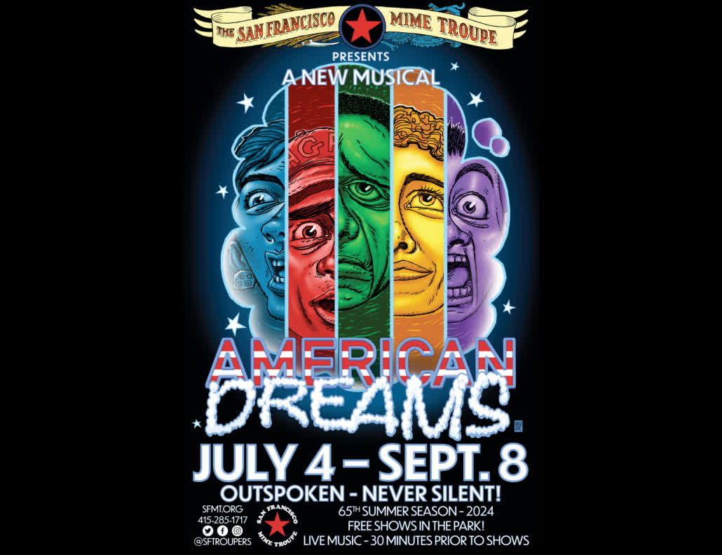 This summer’s San Francisco Mime Troupe’s production, American Dreams, is a show not to be missed. It is a musical comedy for people of all ages. A lively song-filled exploration of the challenges faced by a grandfather and his granddaughter, with the presidential election a few months away.