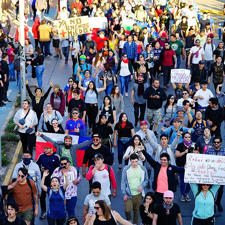 On October 17, students in Chile began the protest by organizing massive fare-evasion, coming in groups to jump the gates at the metro stations. The police came down hard on the students, beating them and arresting hundreds. Thousands of ordinary Chileans flooded the streets in protest, feeling a deep sympathy for the students.