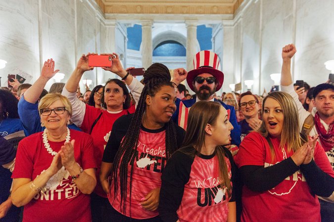 The starting pay for teachers in WV is $34,000 and staff make even less. Some teachers are on food stamps and many more have additional part-time jobs. School employees haven’t had a raise in four years and healthcare costs have soared. The strike began after the West Virginia legislature passed a budget with only a 2% wage increase and a 1% raise in the following two years. Also, the budget included measures to increase teachers’ healthcare charges by $300 a month in 2019. As one striker put it ,“I only clear $1300 every two weeks and they’re wanting to take $300 more away from me. But they tell me that’s okay because we’re going to give you a 1% pay raise. That equals out to 88¢ every two days.”