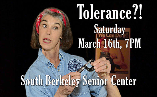 What happens when Rosie the Riveter meets #MeToo? Tolerance?! is a one-woman show written and performed by Kathleen Denny. It is a true and funny account of her years as a machinist and mechanic in the air transport industry.