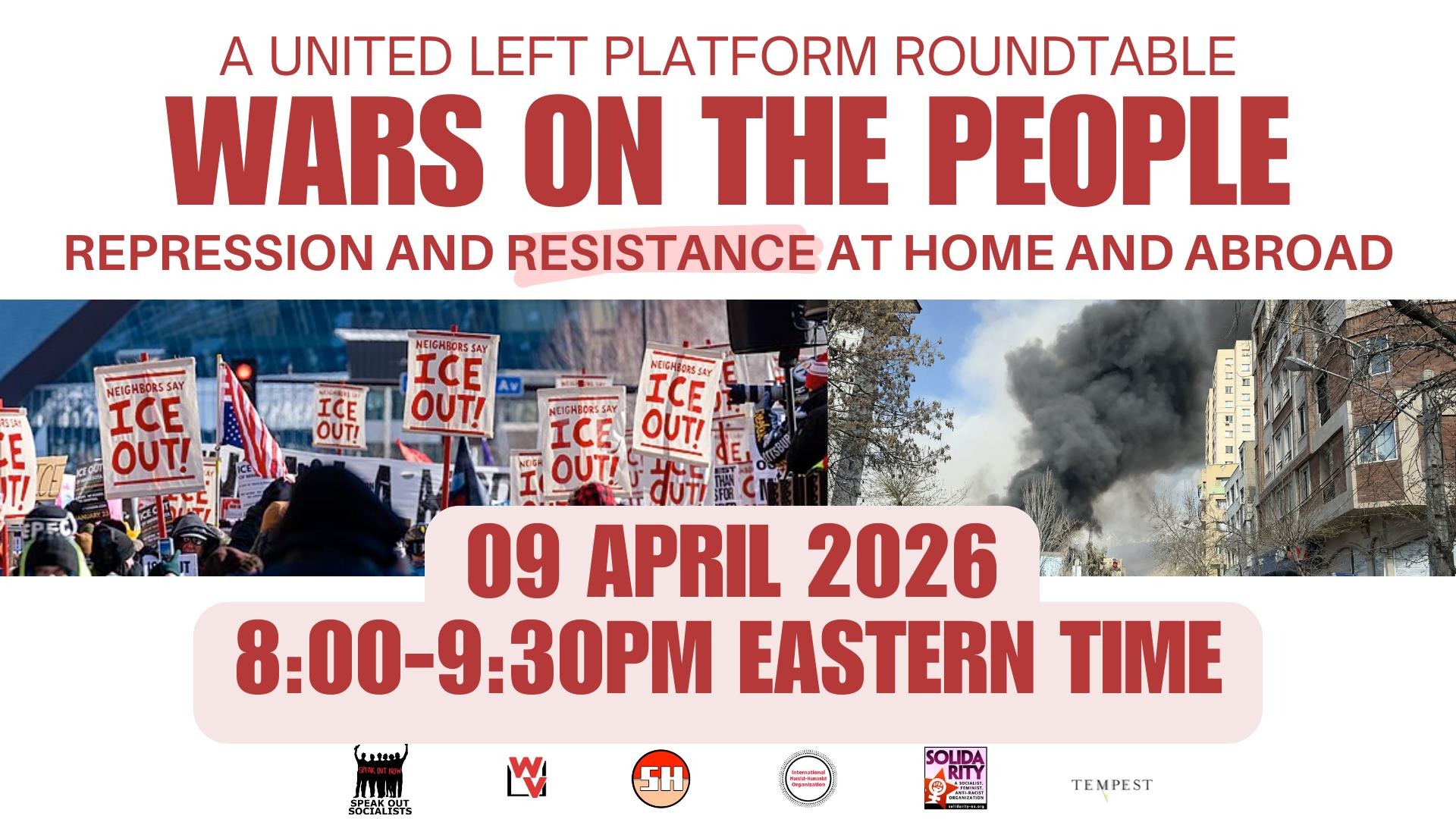 The roundtable represents some of the important experiences of the rising movements resisting the domestic and global rampages of U.S. imperialism under the Trump administration, with perspectives on how these struggles can become powerful, unified and politically independent. From beating back ICE terror in Minneapolis to opposing the U.S.- Israeli wars on Palestine, Iran and Lebanon, and the U.S. threats to Cuba and Latin America, we see the critical necessity of bringing them together for a common purpose of collective liberation. The panelists will discuss how concrete experiences of May Day organizing can connect domestic resistance to MAGA authoritarianism to opposition to U.S. wars and imperialism as a whole.