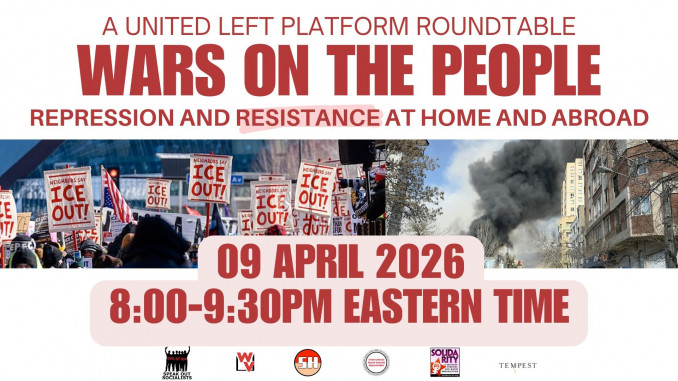 UNITED LEFT PLATFORM, an alliance of revolutionary socialist organizations, invites you to a webinar with an activist panel on confronting anti-immigrant terror and attacks on democratic rights at home, and U.S. imperial crimes around the world.