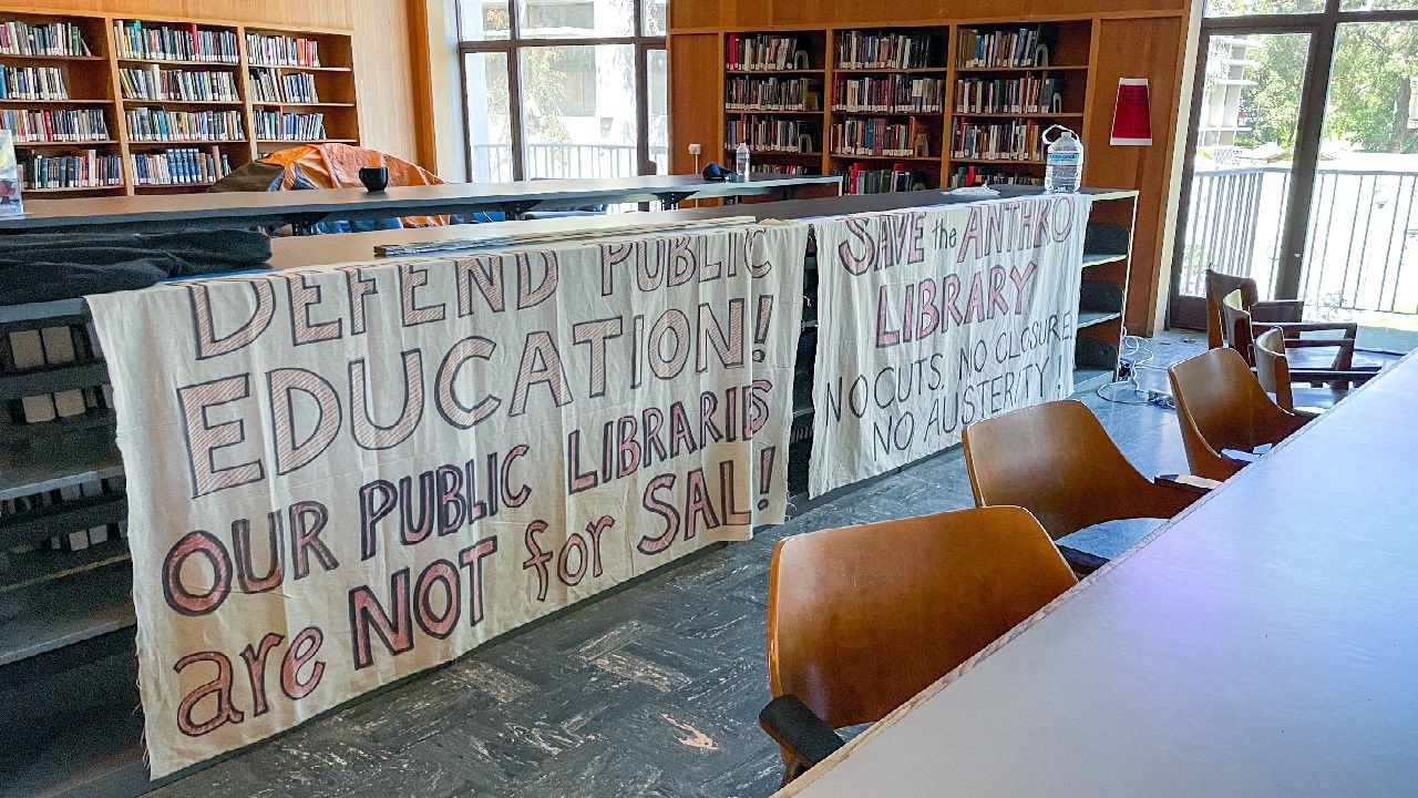 The occupation of the U.C. Berkeley Anthropology Library ended last week on Monday, July 17, after 85 days. The struggle was long and hard fought, but it was victorious. While the occupation did not achieve all of its goals, it succeeded in preserving the Anthropology Library and most of the book collection, as well as ensuring continued access to the Anthropology Library for the public. Compared to the UC administration’s initial goal of completely shutting down the Anthropology Library and removing all the books, this is a significant win.
