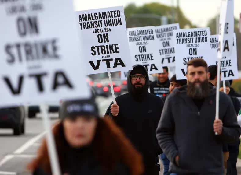 Workers organized in ATU Local 265 at the Valley Transit Authority (VTA) which operates the light rail and bus systems in the South Bay, are on strike. One of the key issues is wages. VTA Management made a “final last offer” of 3% a year, over the next 3 years. The union is demanding 18%. Management also wants to cut the length of medical leave before termination and refuses to deal with outstanding safety questions.