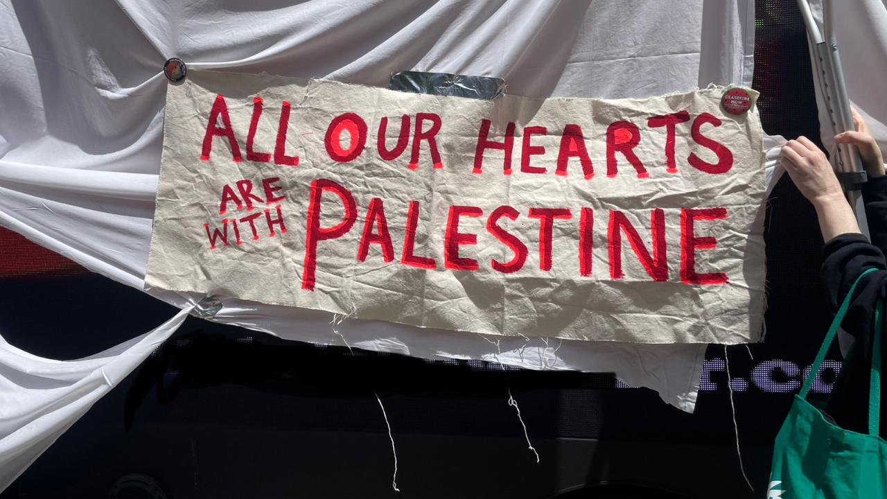 Last Friday, workers at Highland rose up in defense of one of their own when a billboard van, operated by a right-wing media group known for doxxing and harassment, parked at the hospital’s entrance to target a resident physician. The van smeared the doctor with baseless accusations of being a “violent antisemite” for participating in a pro-Palestinian, anti-genocide protest. But this wasn’t just an isolated act — it was part of a coordinated national campaign to intimidate and silence those who dare to speak out for justice.